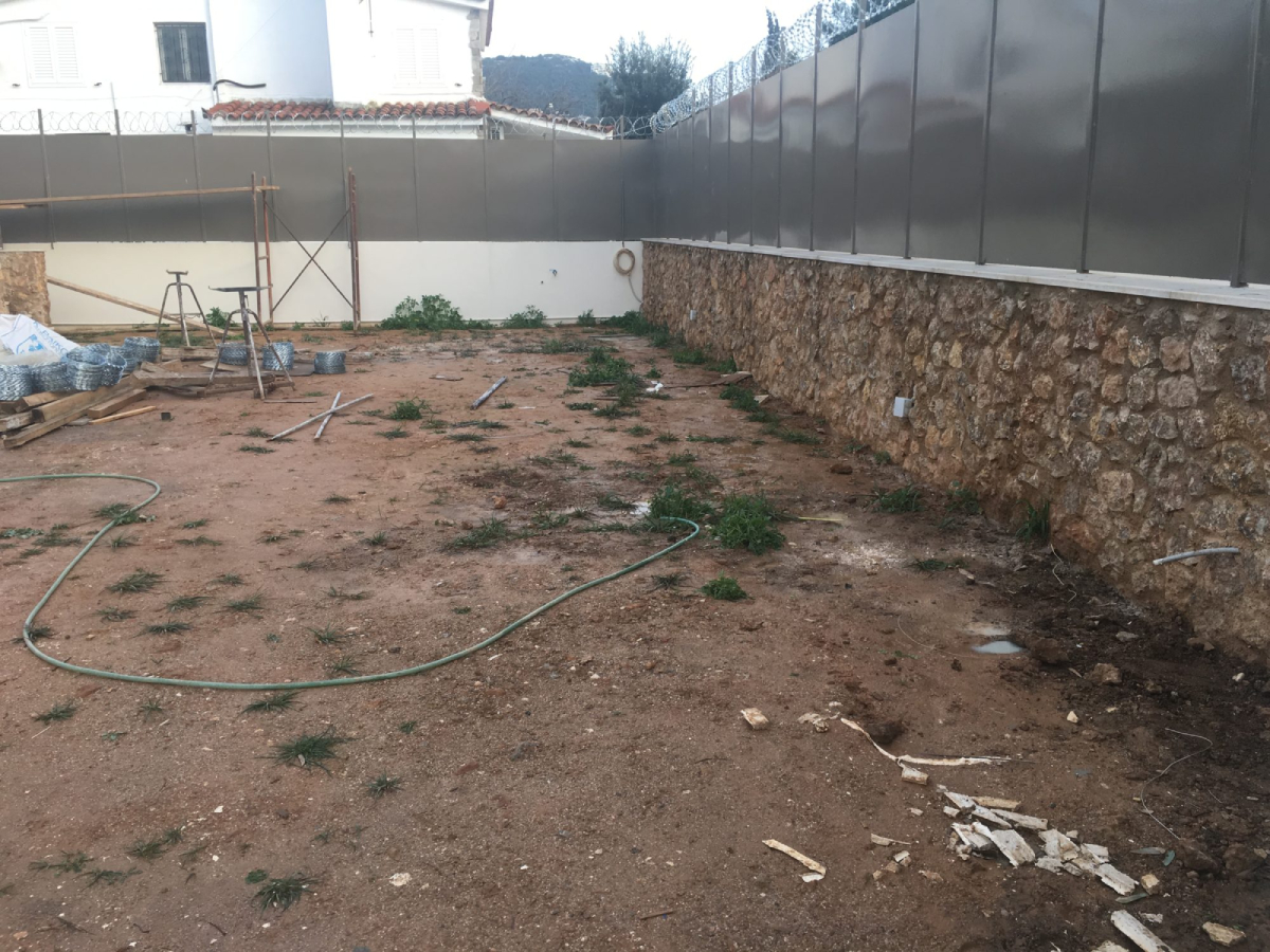 Καταλήξαμε σε έτοιμο χλοοτάπητα καθώς αποτελεί άμεσο και σίγουρο αποτέλεσμα με πυκνή και ομοιόμορφη επιφάνεια. Αρχικά, ξεκινήσαμε με την προετοιμασία για την τοποθέτηση του έτοιμου φυσικού χλοοτάπητα. Φροντίσαμε να αφαιρέσουμε τυχόν απορρίμματα και να αποτρέψουμε τα ζιζάνια να εμφανιστούν στο γκαζόν. Με τα σύγχρονα εργαλεία μας «αφρατέψαμε» το χώμα. Έτσι, το προετοιμάσαμε για καλύτερη αποστράγγιση. Το αποτέλεσμα ήταν ένα τοποθετημένο γκαζόν ομοιόμορφα απλωμένο σε όλο το χώρο και με μία σωστή βάση αποστράγγισης.