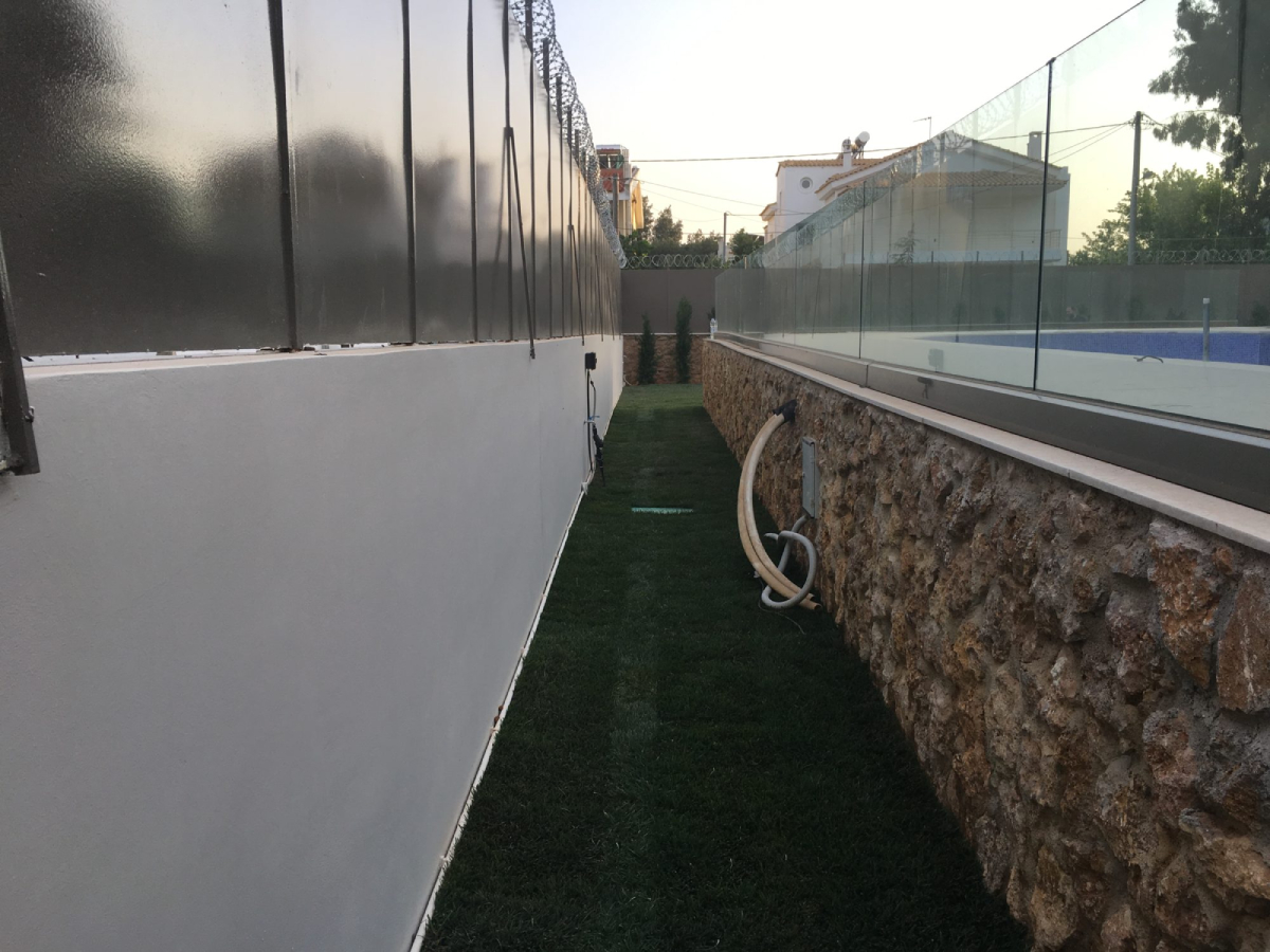 Το έργο περιλαμβάνει κατασκευή κήπου μόνιμης κατοικίας, στη Νέα Ερυθραία σε 300 τετραγωνικά μέτρα. Η τοποθέτηση γκαζόν (είτε με σπορά είτε με έτοιμο χλοοτάπητα) έδωσε στο χώρο μοναδική αισθητική. Παράλληλα, φυτέψαμε φυτά λέιλαντ για φράχτη, αλλά και αρωματικά φυτά για το μαγείρεμα, στο πίσω κηπάκι που βλέπει η κουζίνα. Από αυτή την κατασκευή κήπου δεν θα έλειπαν τα γιουνίπερους. Κι αυτό γιατί είναι φυτά εδαφοκάλυψης, με σκοπό να μην λερώνεται ο τοίχος με χώματα από το πότισμα. Ακόμη, σε αυτή την κατασκευή κήπου φτιάξαμε παρτέρι με γκαζόν και μια ελιά στο κέντρο για συναισθηματικούς λόγους, καθώς η ελιά είναι της γιαγιάς. Τέλος, στον διάδρομο που οδηγεί στο γκαράζ, δεξιά και αριστερά τον συντροφεύουν πλέον λωρίδες γκαζόν για να ομορφαίνει το σκέτο τσιμέντο. Από την αρχή έχει τοποθετηθεί αρδευτικό σύστημα 10 στάσεων για να μπορεί να συντηρείτε σωστά με νερό. Επίσης, προστέθηκε ένα φίλτρο νερού με 15 bar πίεση λόγο αυξομείωσης του δικτύου της περιοχής και μια ηλεκτροβάνα master για να ελέγχει τις 10 γραμμές, σε περίπτωση που κολλήσει το σύστημα και μείνει κάποια γραμμή ανοιχτή και ποτίζει ασταμάτητα και στο τέλος ο λογαριασμός φτάσει στα ύψη. Ωστόσο, στο γκαράζ βγάλαμε το φυσικό γκαζόν και το αντικαταστήσαμε με συνθετικό χλοοτάπητα γιατί με το αυτόματο πότισμα φούσκωνε ο τοίχος από την υγρασία.